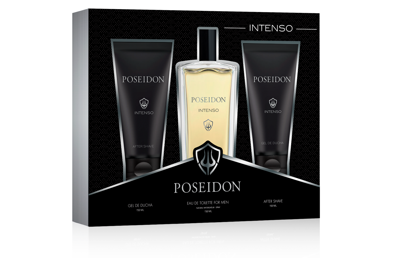 Una fragancia de la familia olfativa ámbar amaderada. Masculina, misteriosa y elegante, Poseidon Intenso es una representación olfativa del hombre contemporáneo. Para hombres que saben lo que quieren y luchan para conseguirlo. En sus notas de salida destacan la manzana verde y bergamota, haciéndose paso un corazón de salvia, canela, clavel y ciruela para finalmente reposar sobre una base ambarada amaderada en la que distinguimos notas como el ámbar gris, sándalo, musgo de roble y madera de cedro.